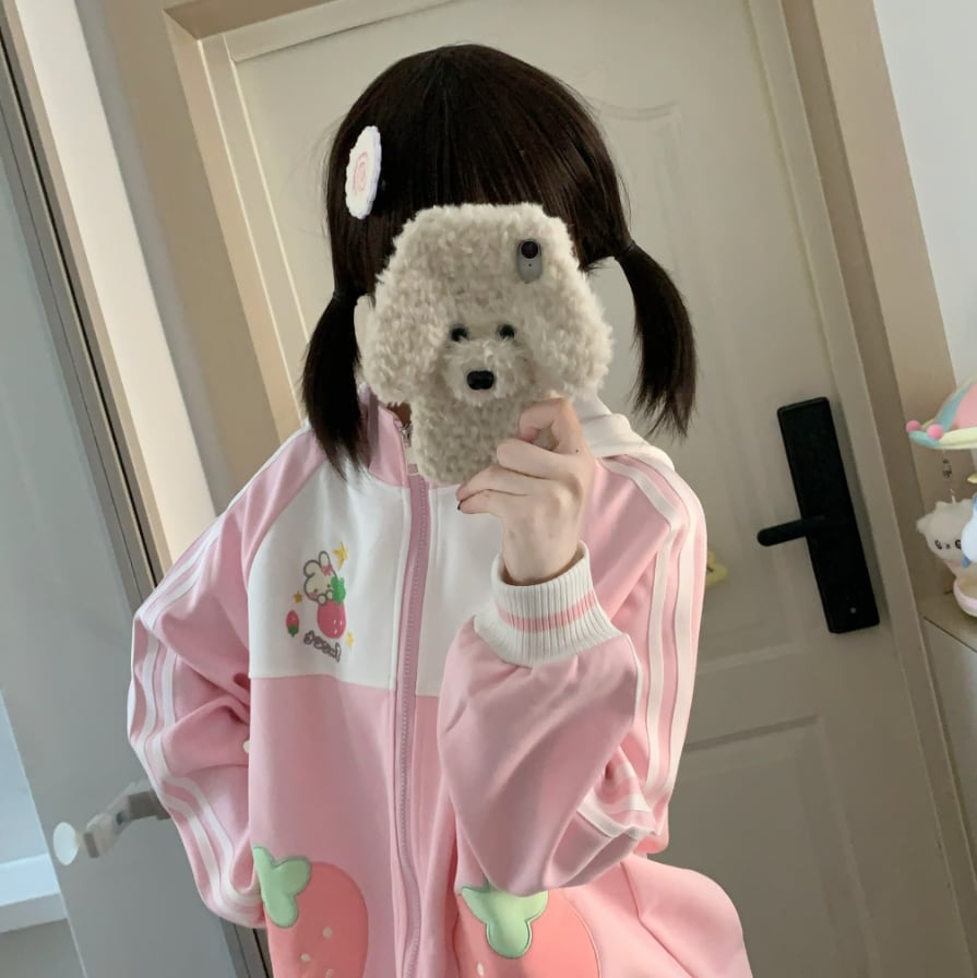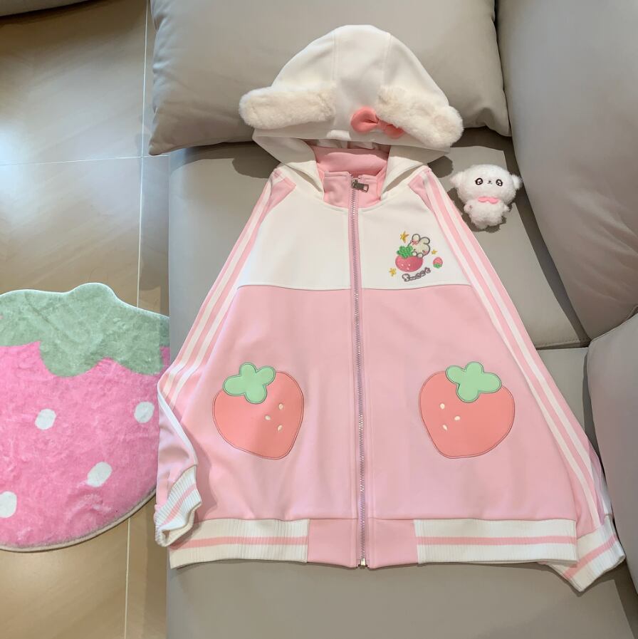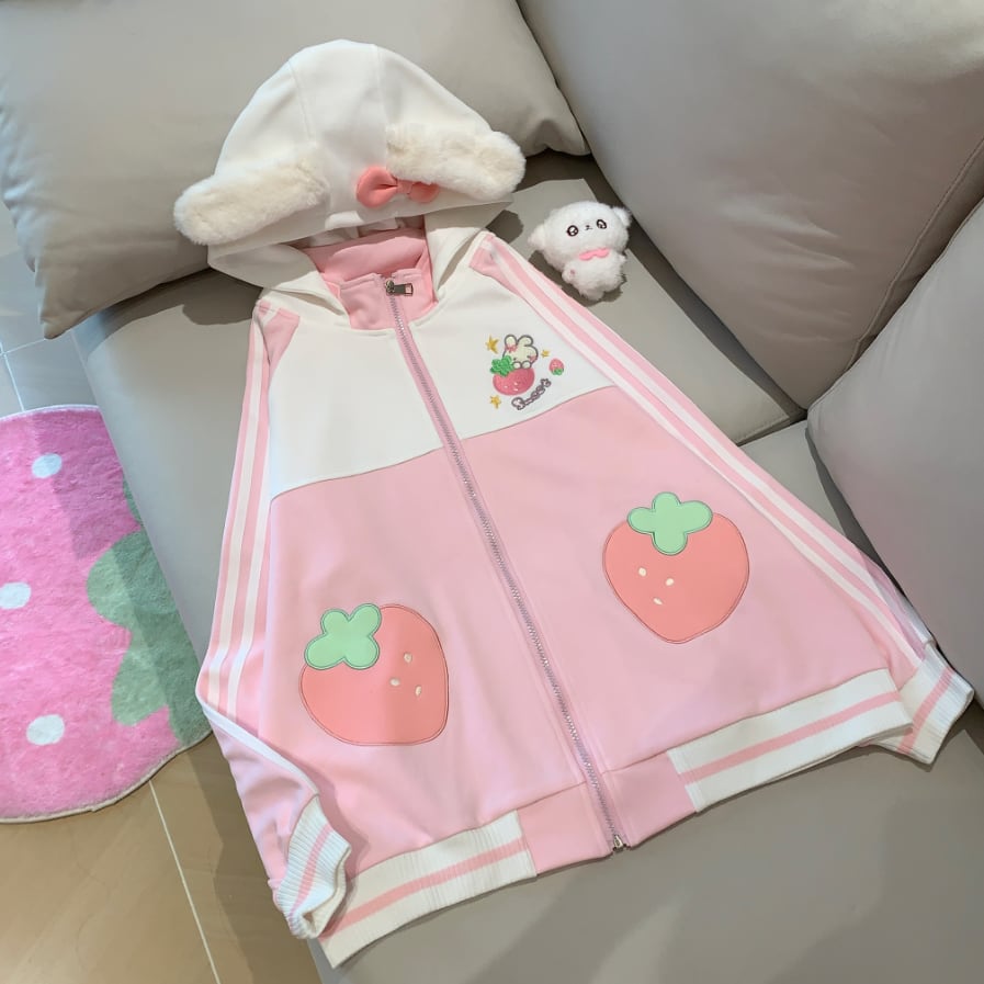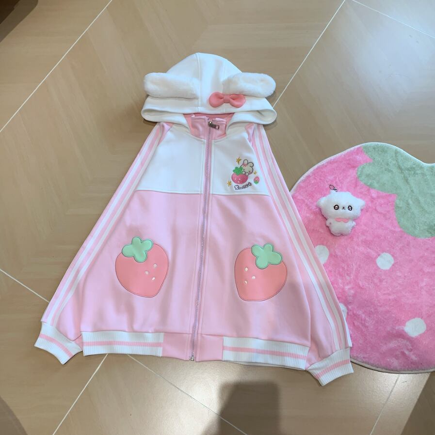 ゆめかわ♡全2カラー レースうさ耳付きジップアップパーカー jya6★