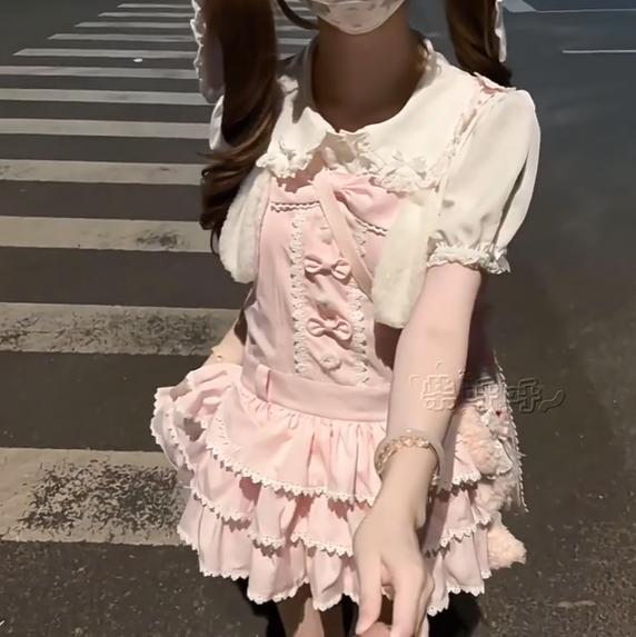即納♡チョーカー&つけ袖付きピンクフリルドレス