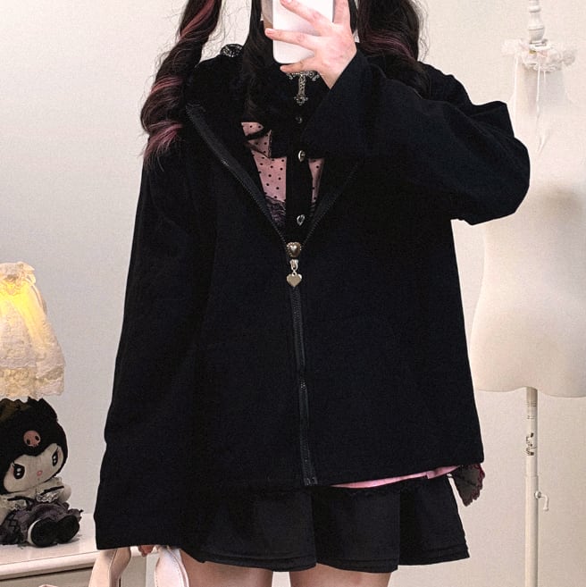 ゆめかわ♡全2カラー レースうさ耳付きジップアップパーカー jya6★