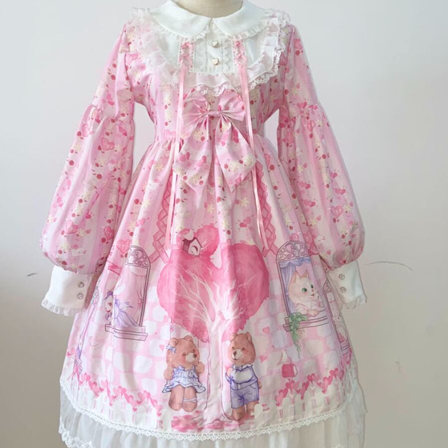 ゆめかわ♡ピンクフリルミモレ丈ワンピース wanpi140★