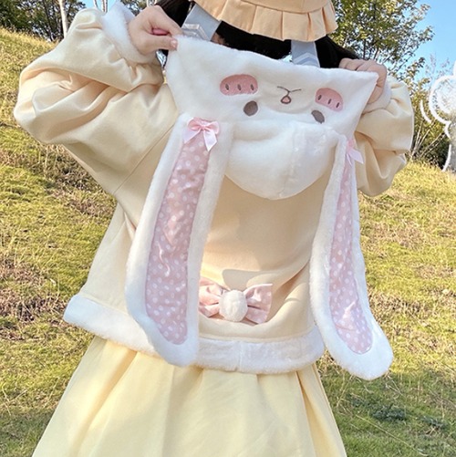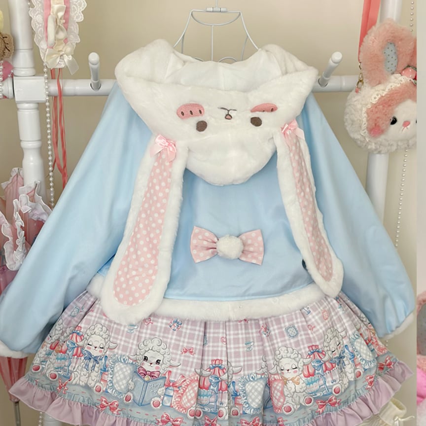 ゆめかわ♡全2カラー レースうさ耳付きジップアップパーカー jya6★