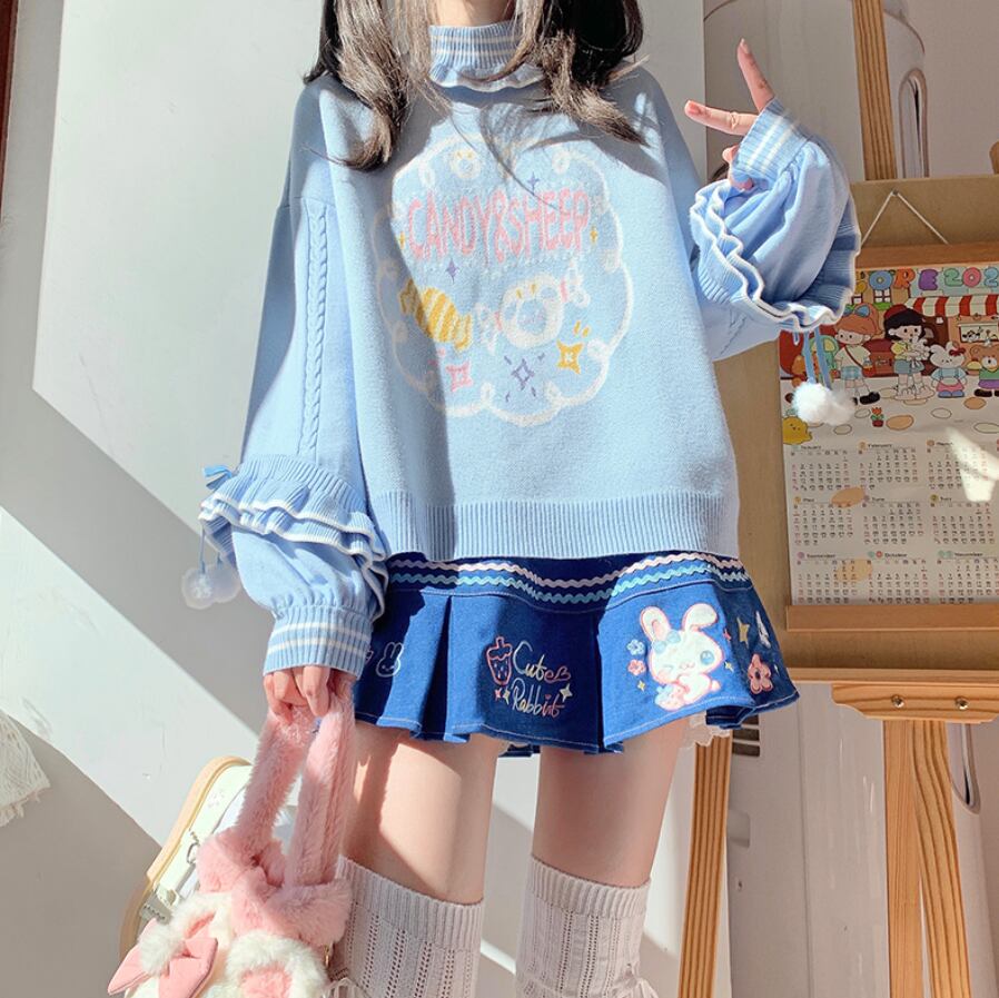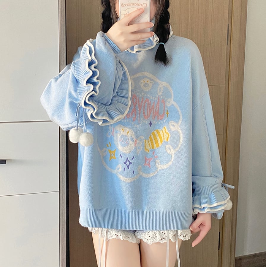 ゆめかわ♡ボンボン付きフリルセーター tops30
