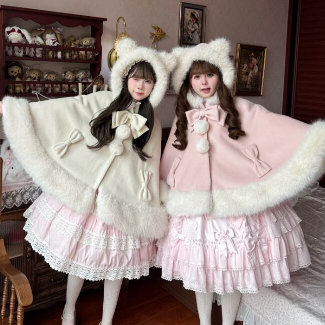 ゆめかわ♡リボン付きホワイトロリィタケープ jya45★