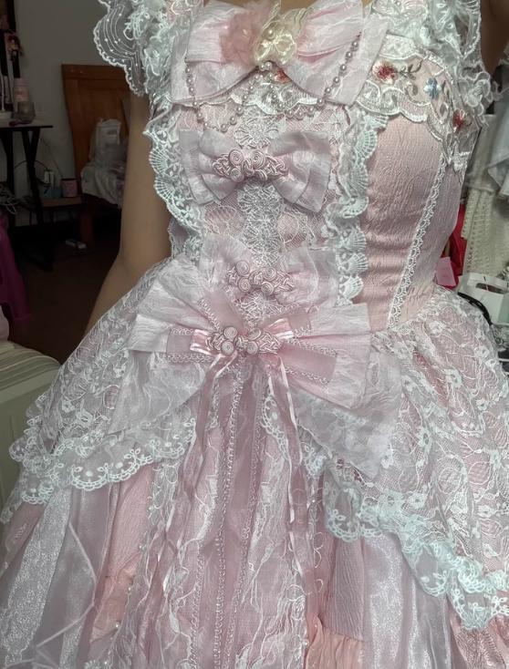 即納♡チョーカー&つけ袖付きピンクフリルドレス