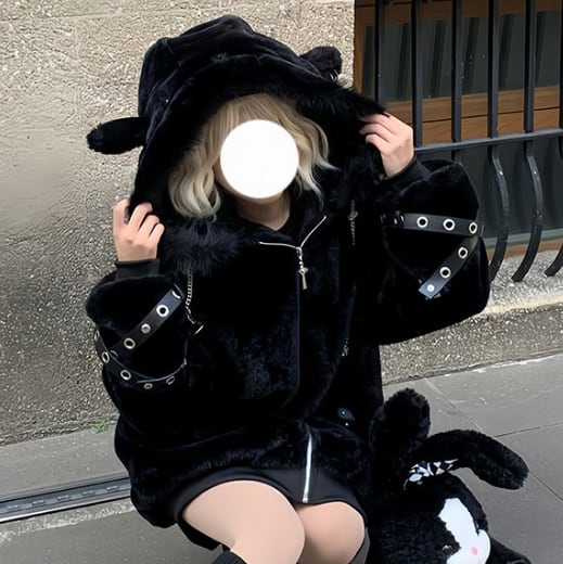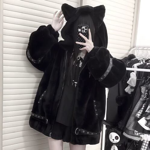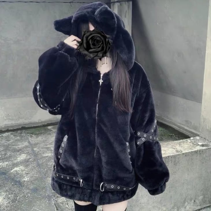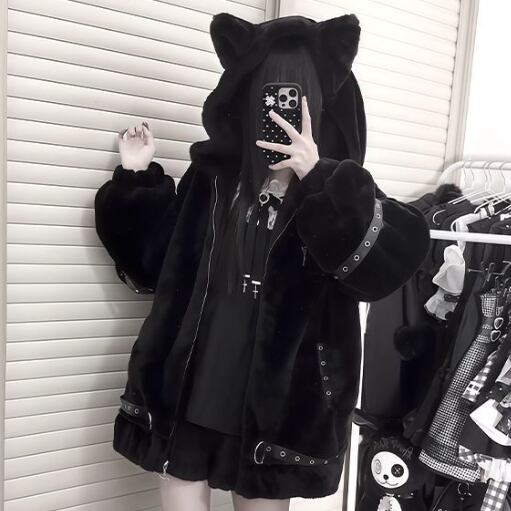 ゆめかわ♡猫耳付きもこもこジャケット ブラック jya33★