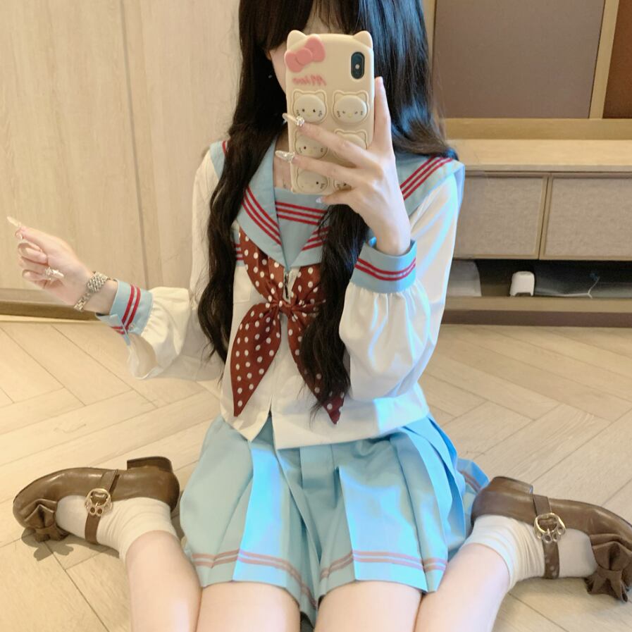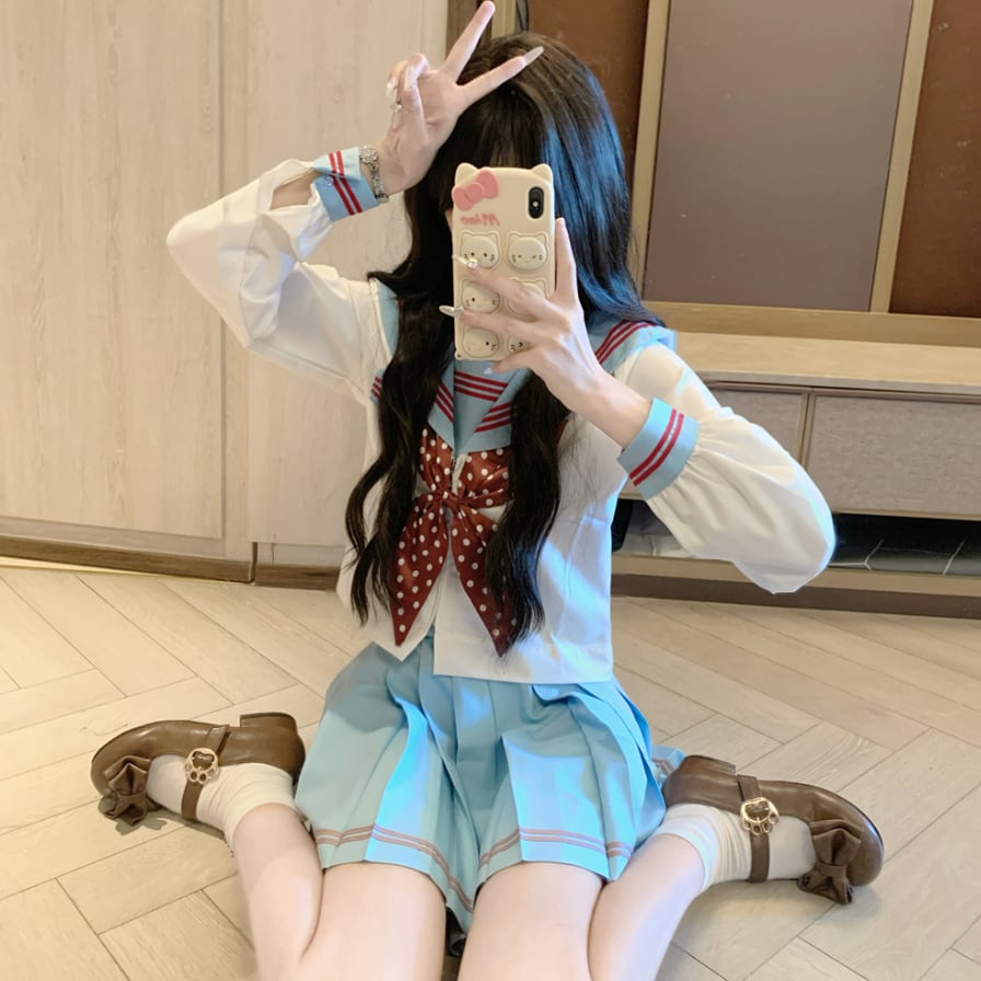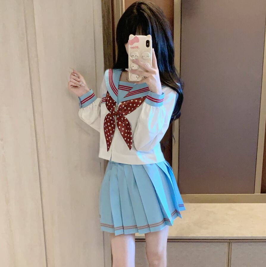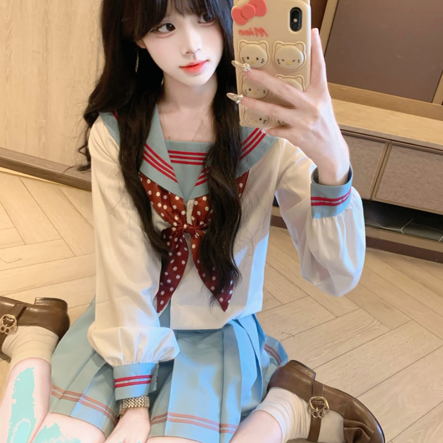 ゆめかわ♡選べる袖丈♪ドット柄リボンセーラー服 seifuku55