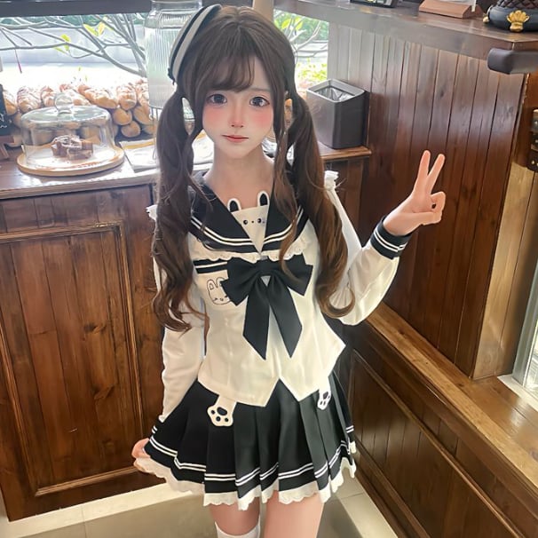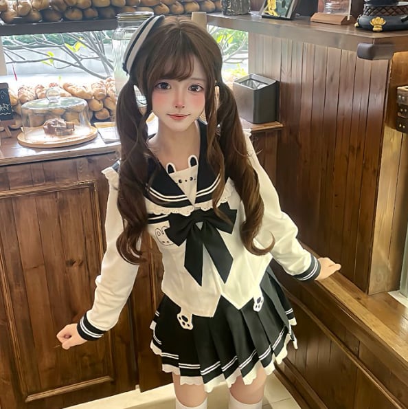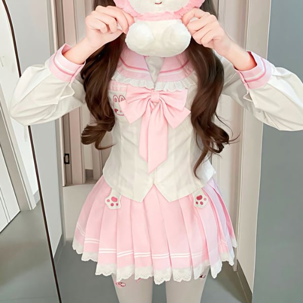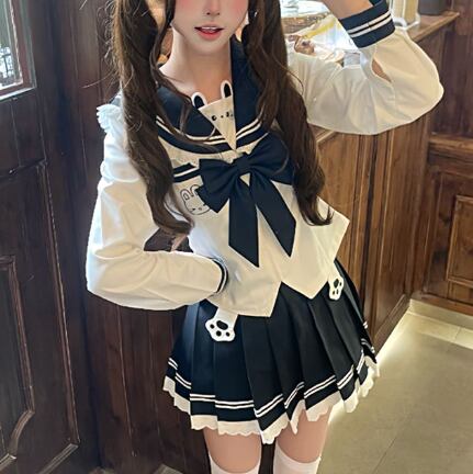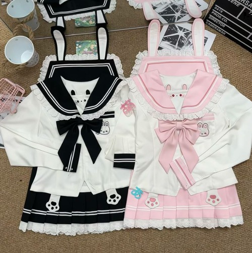 ゆめかわ♡全2カラー レッグウォーマー&ヘアクリップ付き制服セット seifuku44