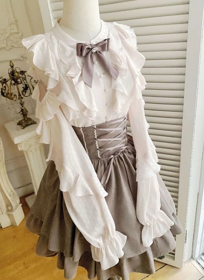 45日前後で発送♡ドット柄ブラウス&サスペンダースカート set82★