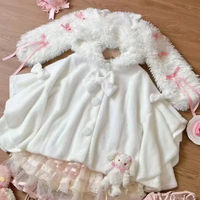 ゆめかわ♡リボン付きホワイトロリィタケープ jya45★