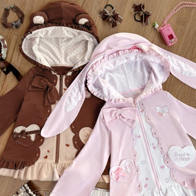 ゆめかわ♡全2カラー レースうさ耳付きジップアップパーカー jya6★