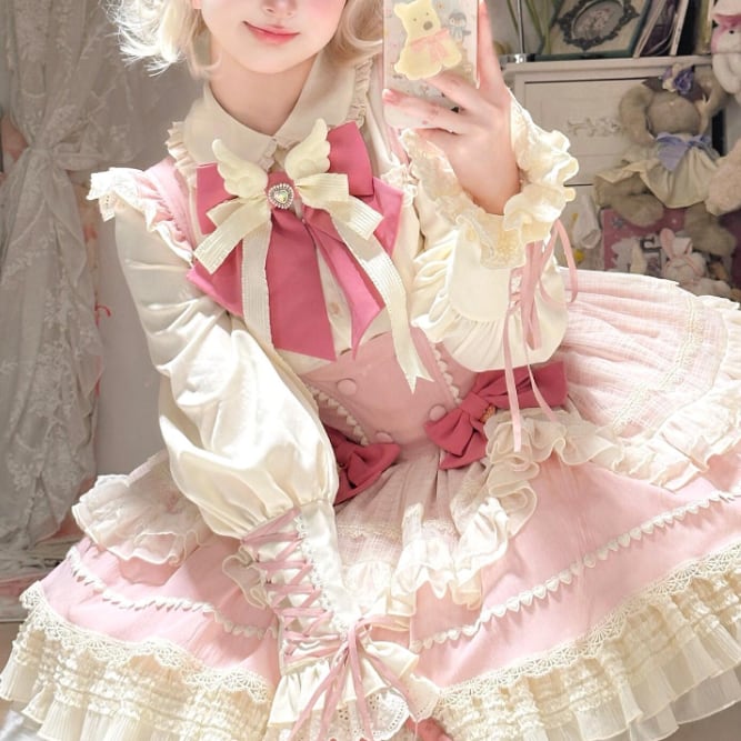 ♡サイズ・カラー交換は1度のみ無料で承ります(返送料はお客様元払いになります) ♡ご注文後のキャンセルはご遠慮下さい。 ♡トップスサイズ 【S】着丈約49cm バスト約96cm 肩幅約34cm ウエスト約80cm 【M】着丈約50cm バスト約100cm 肩幅約35cm ウエスト約84cm 【L】着丈約51cm バスト約104cm 肩幅約36cm ウエスト約88cm 【XL】着丈約52cm バスト約108cm 肩幅約37cm ウエスト約92cm ♡スカートサイズ 【S】着丈約81cm ウエスト約66-71cm バスト約88-93cm 【M】着丈約83.5cm ウエスト約70-75cm バスト約92-97cm 【L】着丈約86cm ウエスト約74-79cm バスト約96-101cm 【XL】着丈約88.5cm ウエスト約78-83cm バスト約100-105cm 【納期について】 ●約3~4週間。(20日前後で発送・5日~6日でお届けのイメージ) 当店では、ご注文後に海外より仕入れを開始するため、お届けまでにお時間を 頂いております。ご了承ください。 【商品・返品について】 ●イメージ違いなどの返品は受け付けておりません。 ●海外製品のため日本のものに比べて縫製が粗い場合がございます。 ●不良品などのご連絡は到着から3日以内にご連絡ください。期限を過ぎますと返品・交換の ご要望がお受けできません。 レディース ゆめかわいい 量産型 地雷系 ロリータ ロリィタ 可愛い かわいい