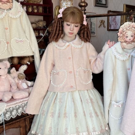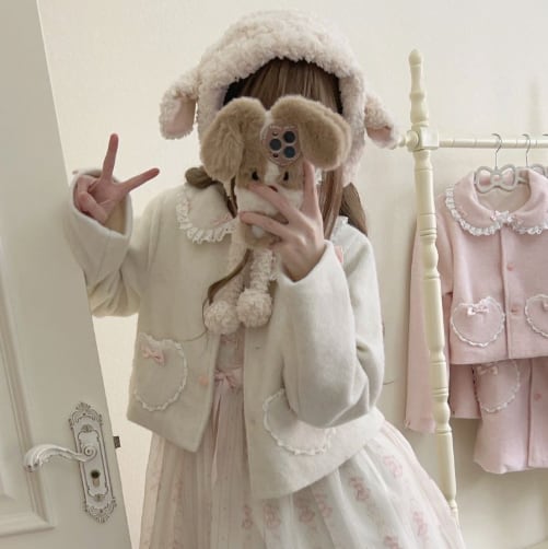 ゆめかわ♡全2カラー パールハートボタン付きポンチョ jya46★