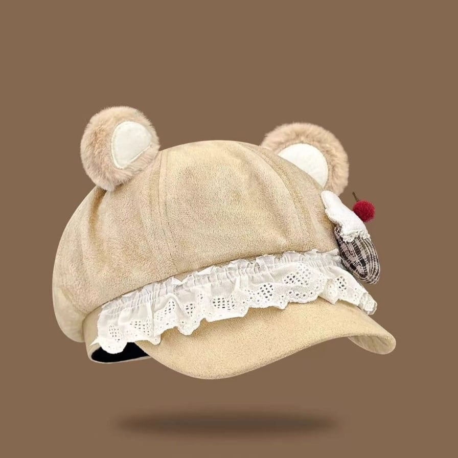 ゆめかわ♡全3カラー フリル付きクマ耳キャップ komono5