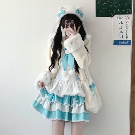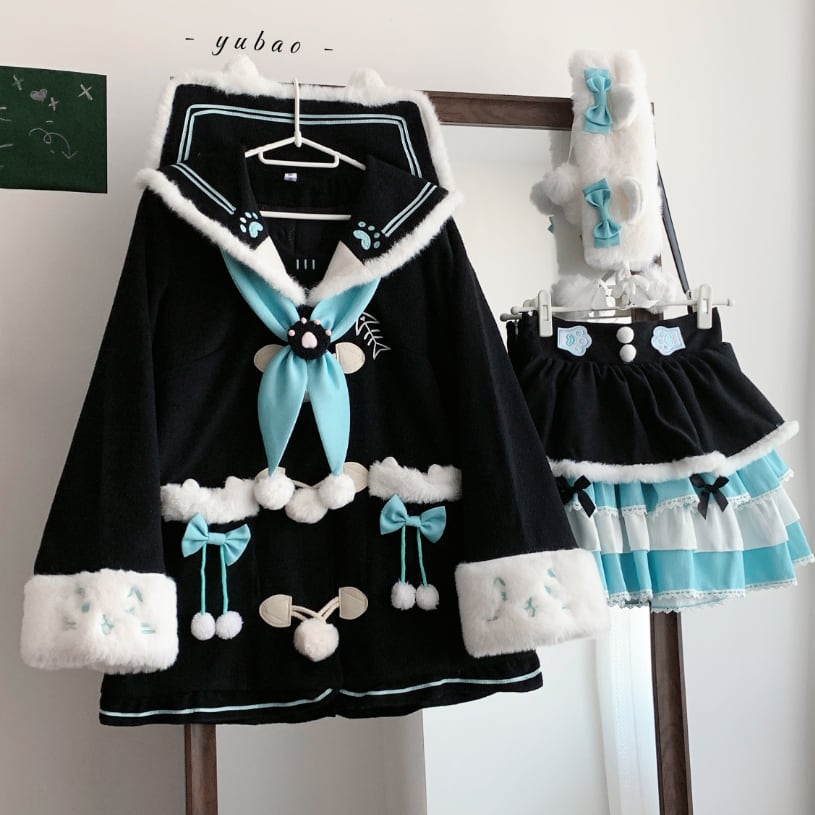 ゆめかわ♡全2カラー レッグウォーマー&ヘアクリップ付き制服セット seifuku44