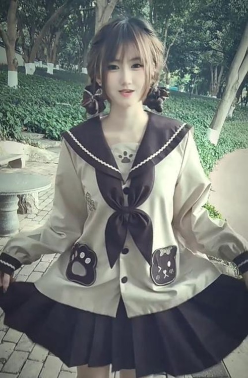 ゆめかわ♡全2カラー レッグウォーマー&ヘアクリップ付き制服セット seifuku44
