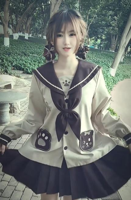 ゆめかわ♡選べる袖丈♪エプロン付きチェリーケーキセーラー服 seifuku75