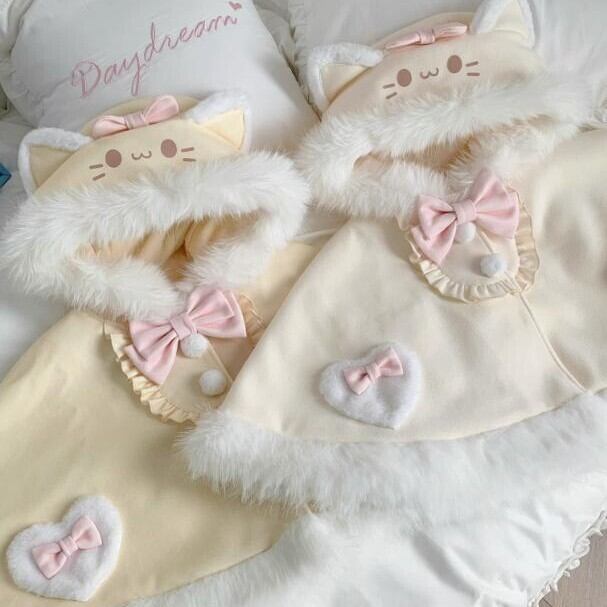 ゆめかわ♡全2カラー パールハートボタン付きポンチョ jya46★