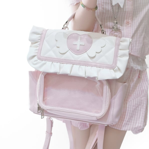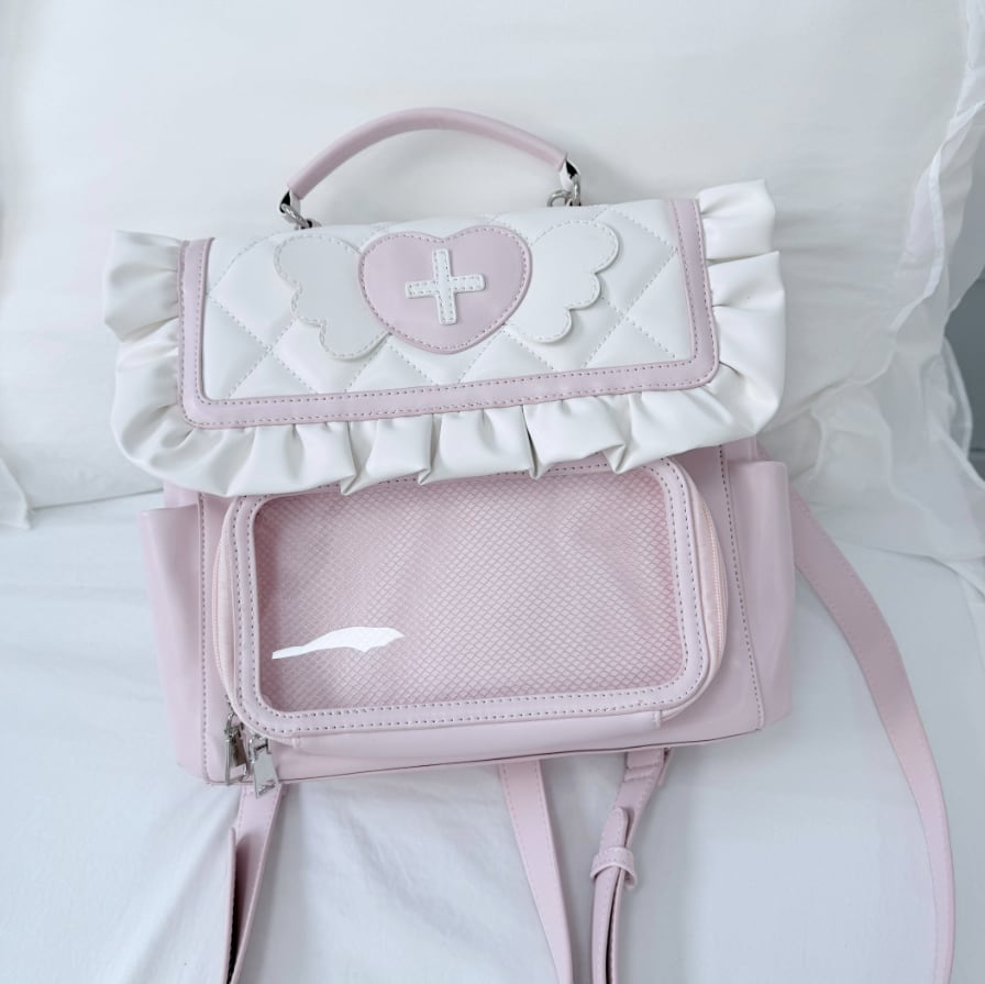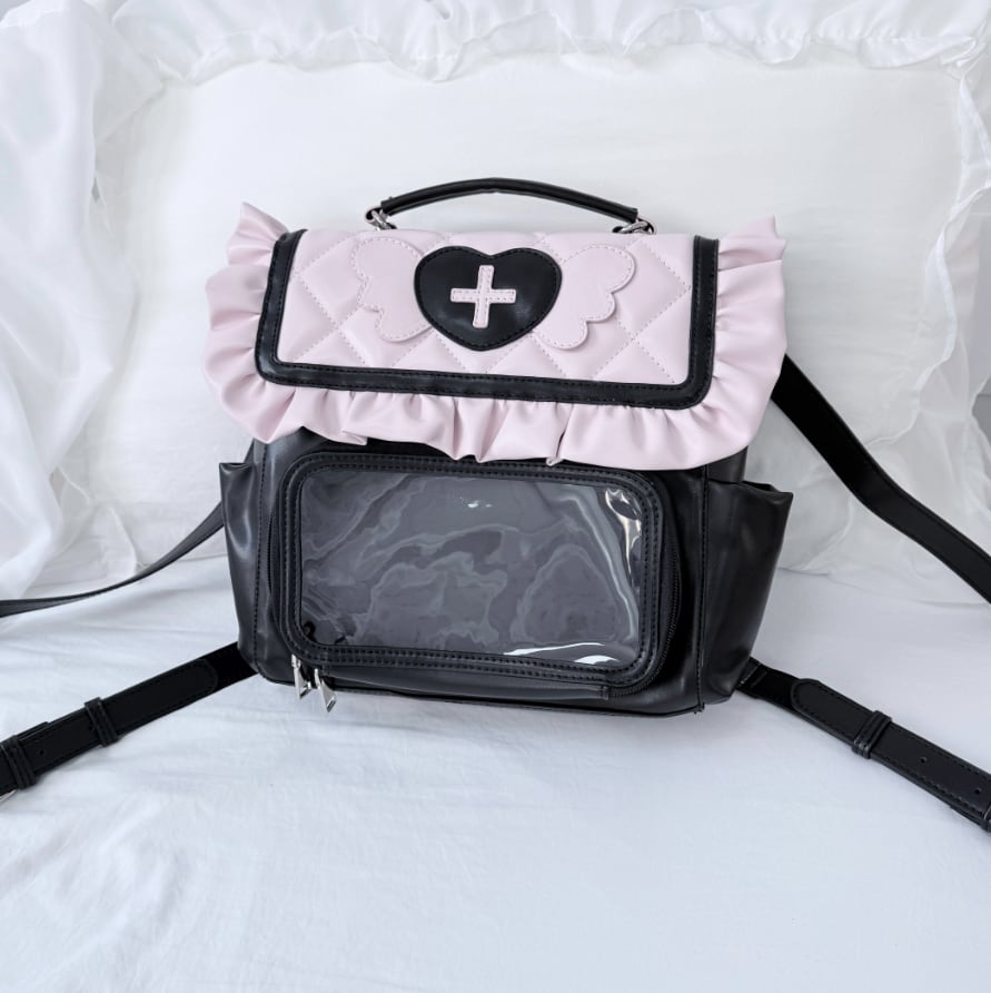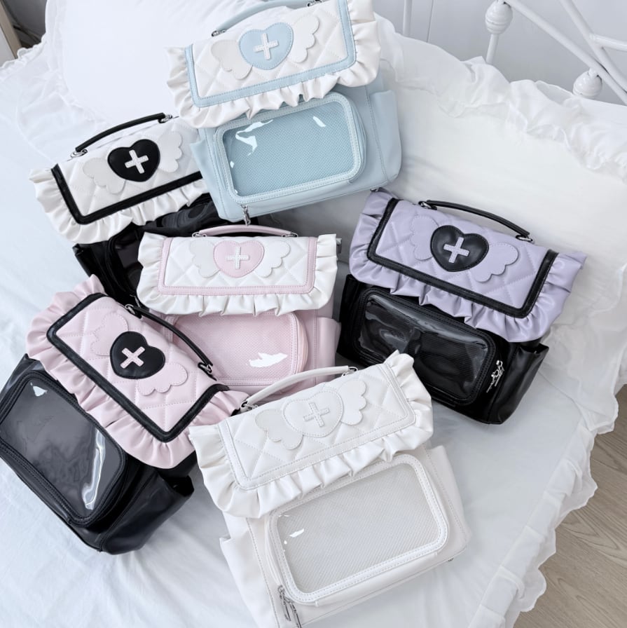 ♡サイズ・カラー交換は1度のみ無料で承ります(返送料はお客様元払いになります) ♡ご注文後のキャンセルはご遠慮下さい。 ♡サイズ 縦25㎝×横30㎝×マチ9㎝ 【納期について】 ●約3~4週間。(20日前後で発送・5日~6日でお届けのイメージ) 当店では、ご注文後に海外より仕入れを開始するため、お届けまでにお時間を 頂いております。ご了承ください。 【商品・返品について】 ●イメージ違いなどの返品は受け付けておりません。 ●海外製品のため日本のものに比べて縫製が粗い場合がございます。 ●不良品などのご連絡は到着から3日以内にご連絡ください。期限を過ぎますと返品・交換の ご要望がお受けできません。 レディース ゆめかわいい 量産型 地雷系 ロリータ ロリィタ 可愛い かわいい