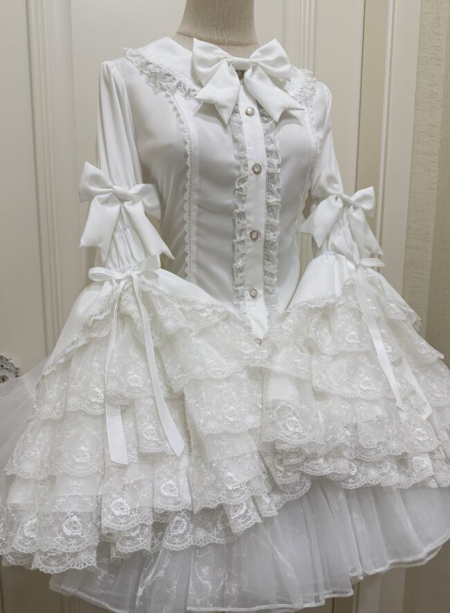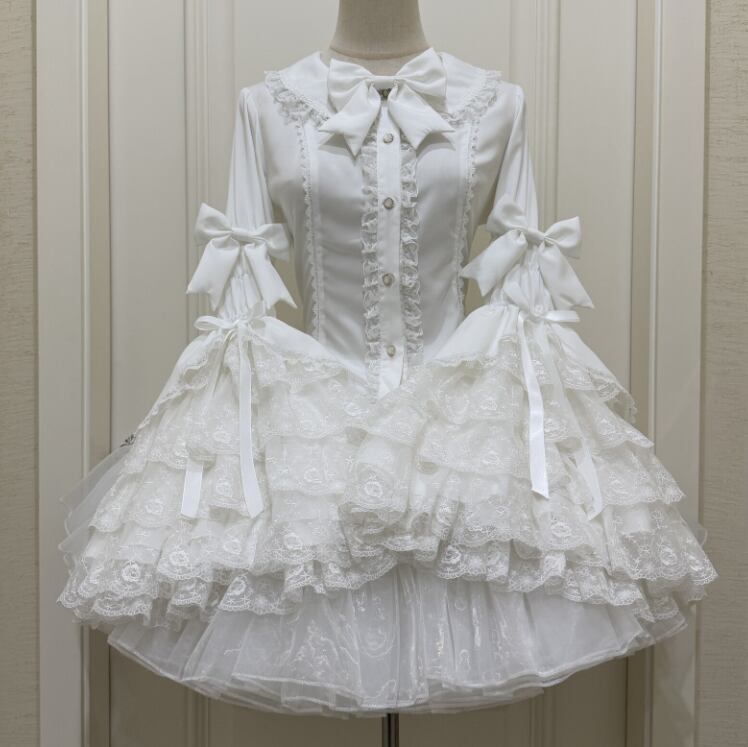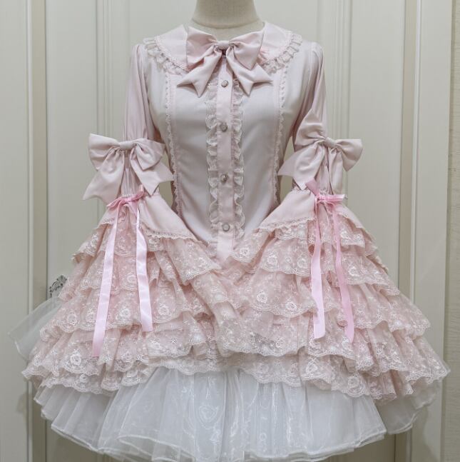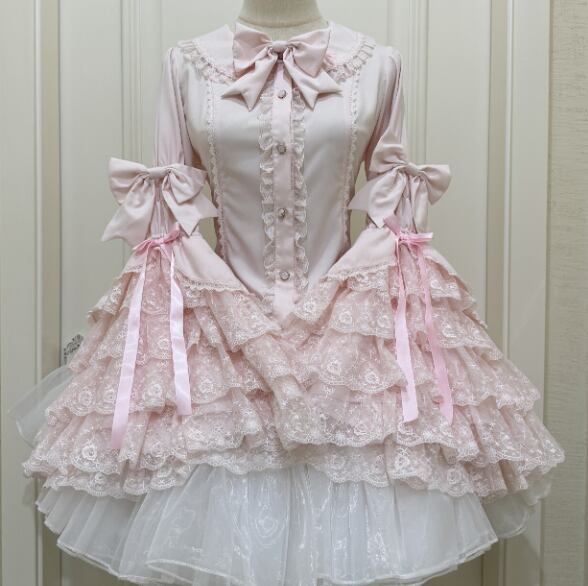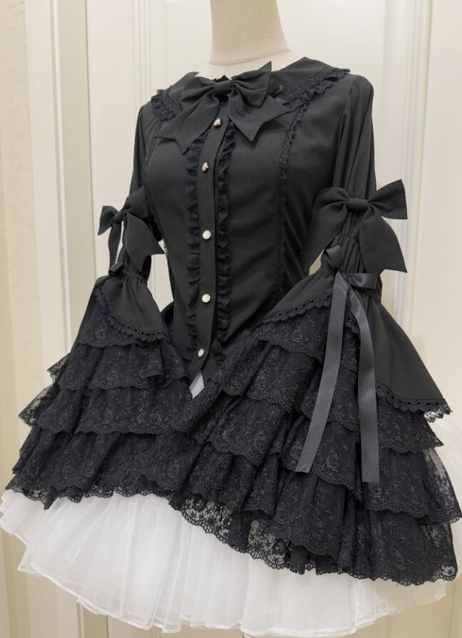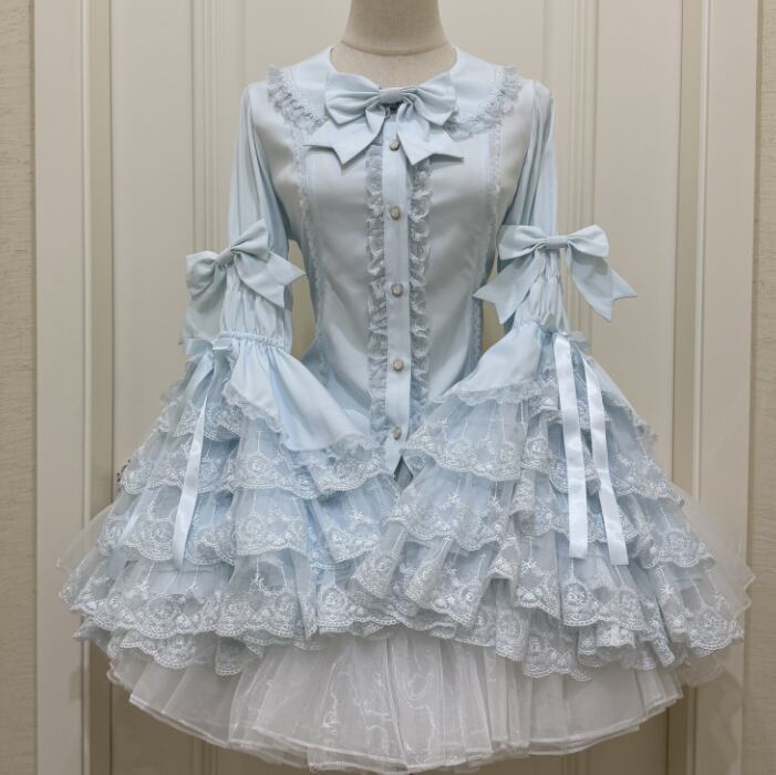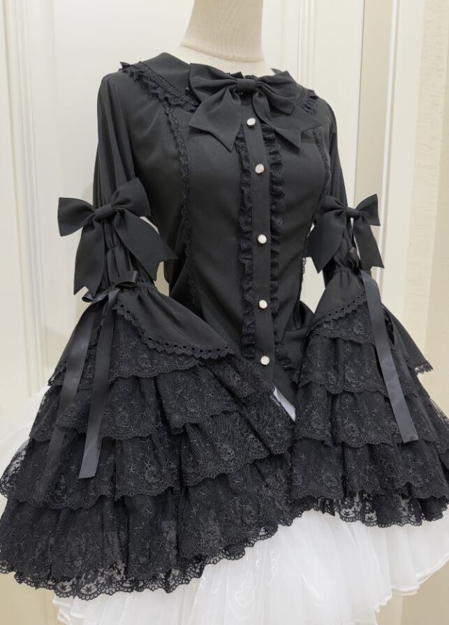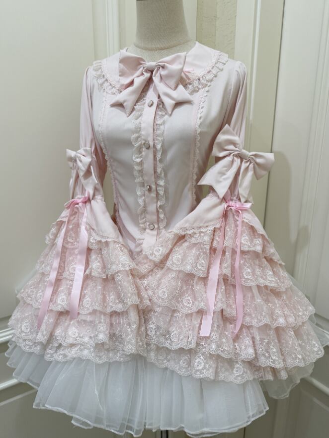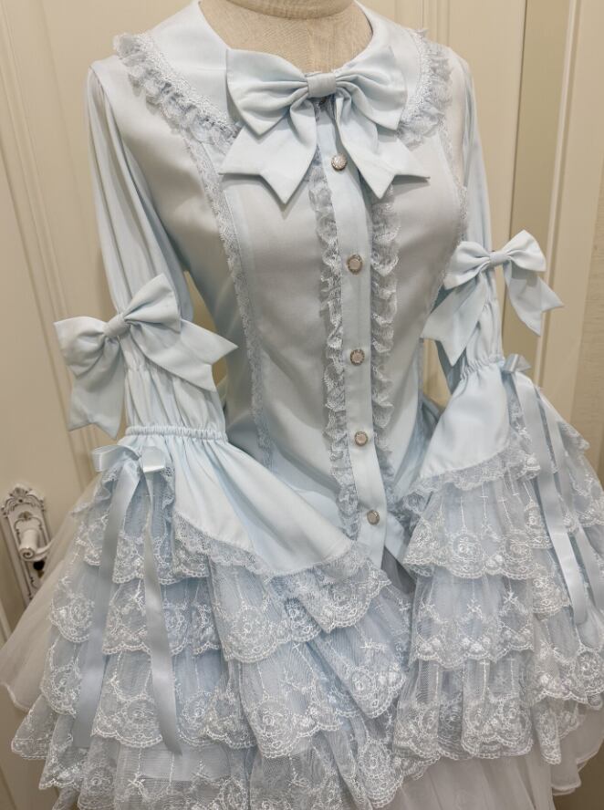ゆめかわ♡全3カラー リボン&つけ袖付きフリルブラウス tops5★