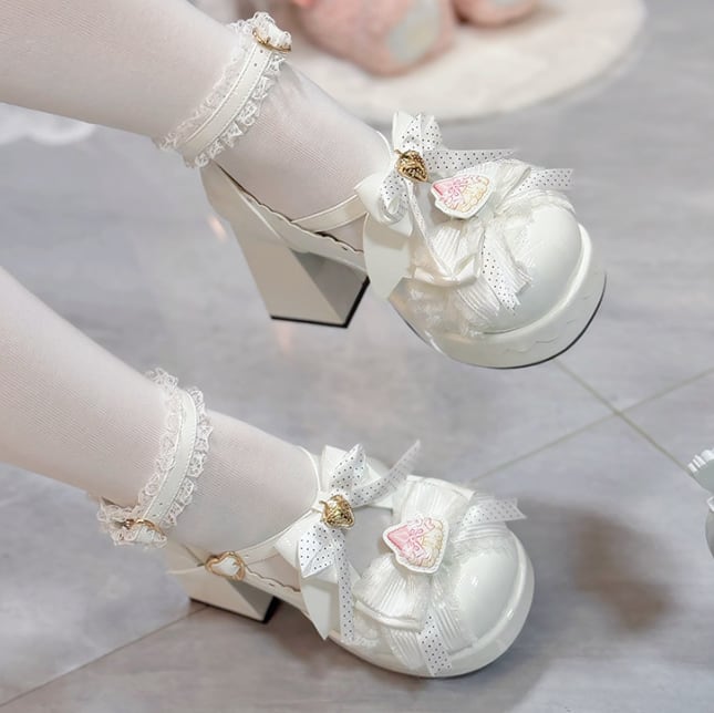 ゆめかわ♡全4カラー バックリボン&ゴールドチャーム付きパンプス kutu10