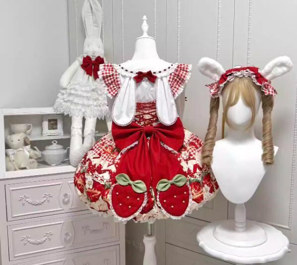 即納♡うさ耳ブラウス&いちごJSKコンプリートセット XLサイズ
