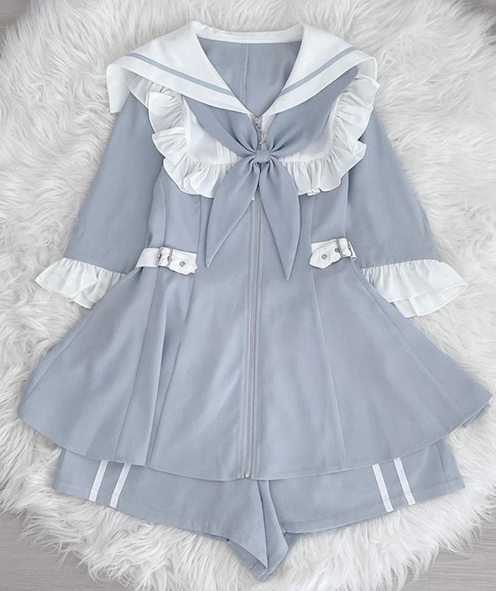 ゆめかわ♡全2カラー レッグウォーマー&ヘアクリップ付き制服セット seifuku44