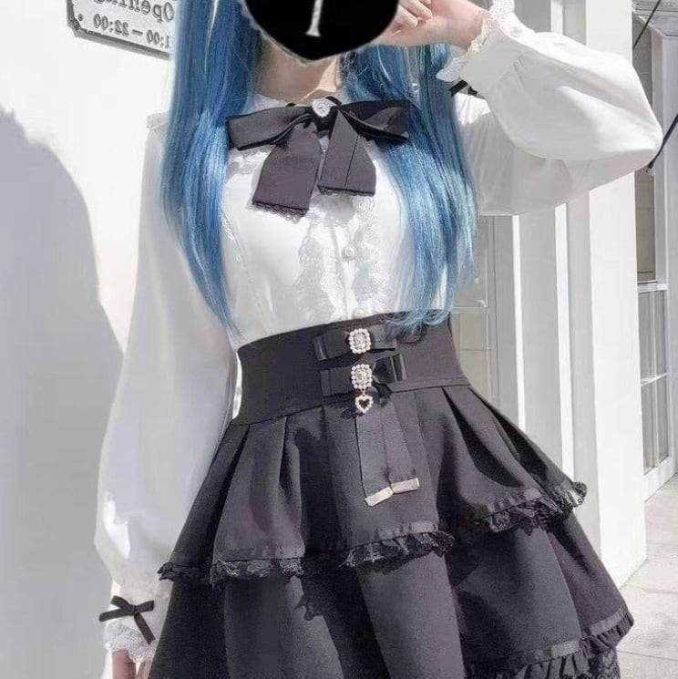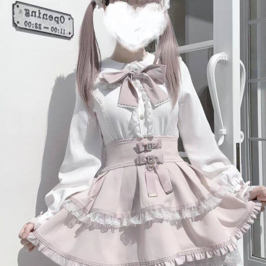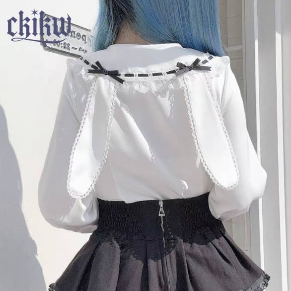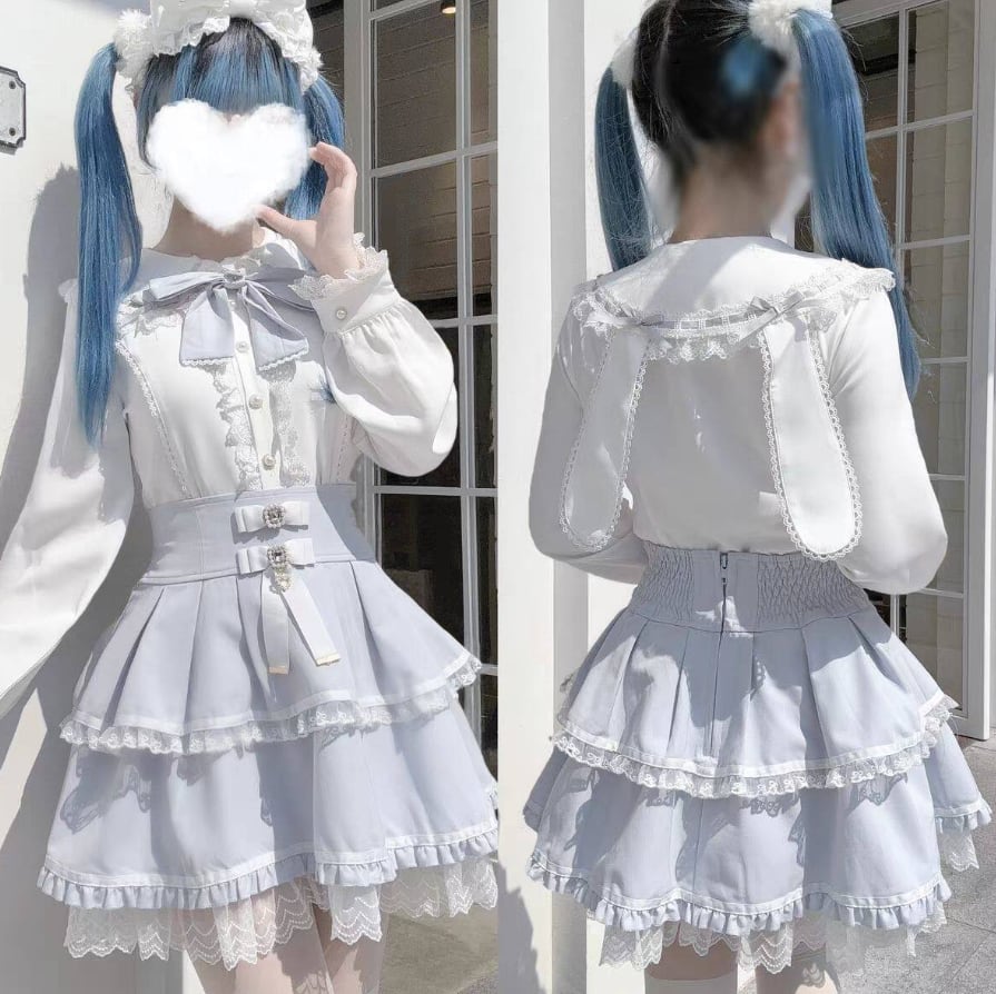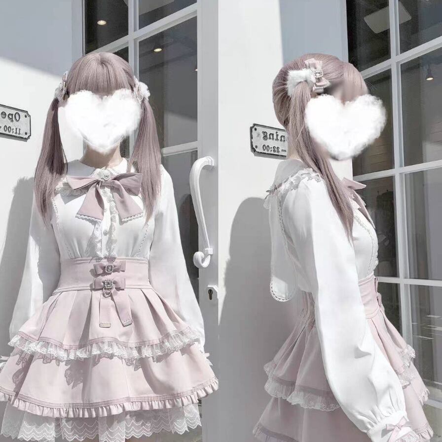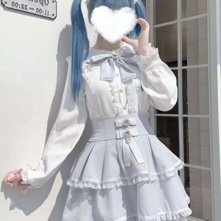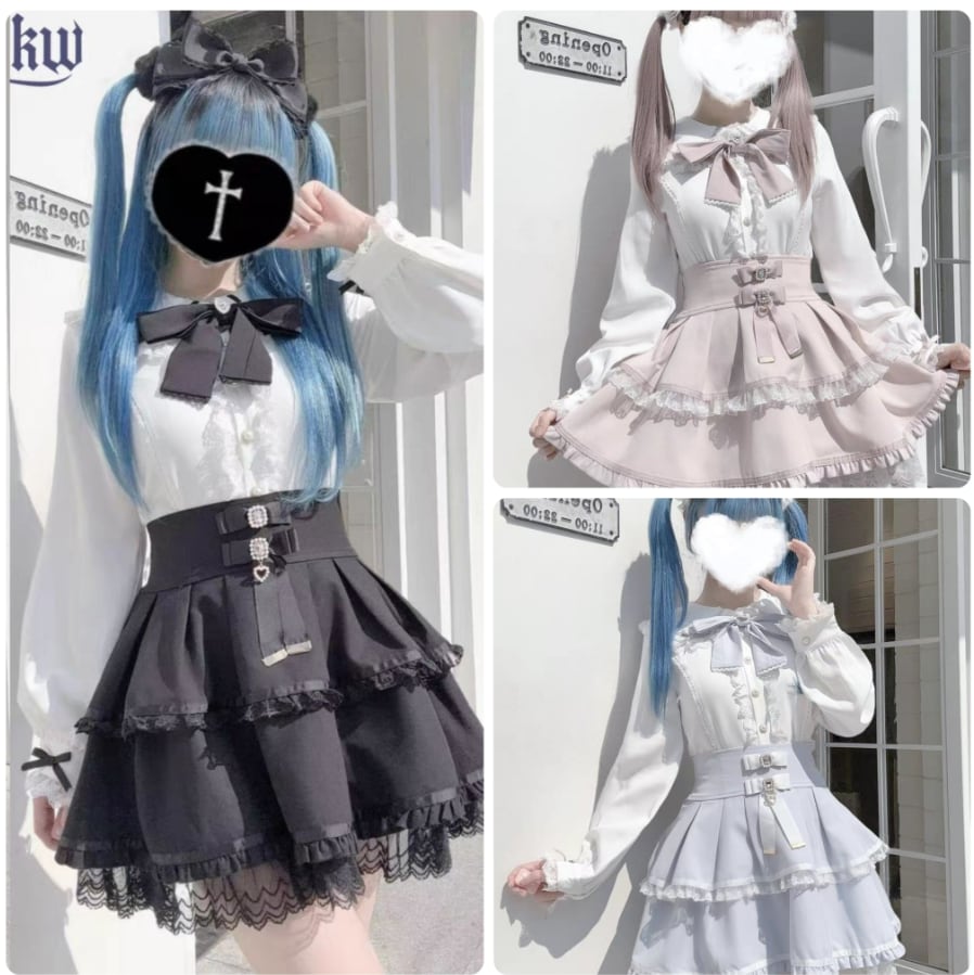 ゆめかわ♡全3カラー リボン&つけ袖付きフリルブラウス tops5★