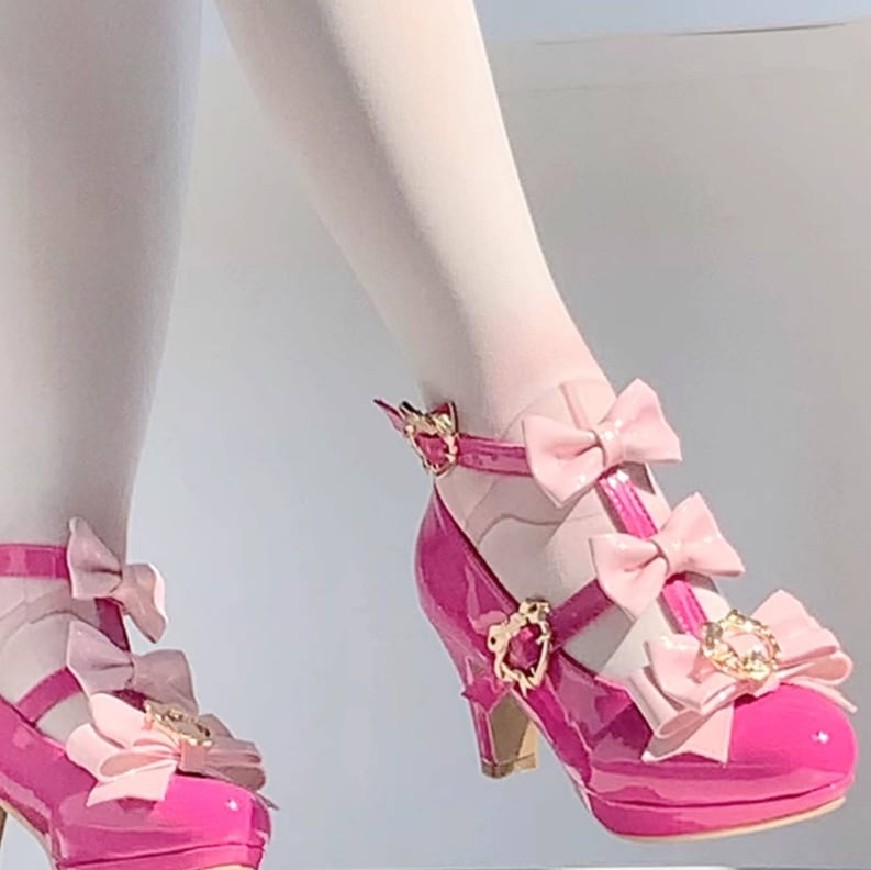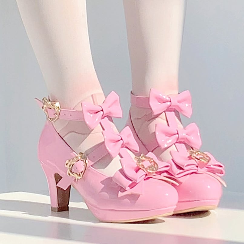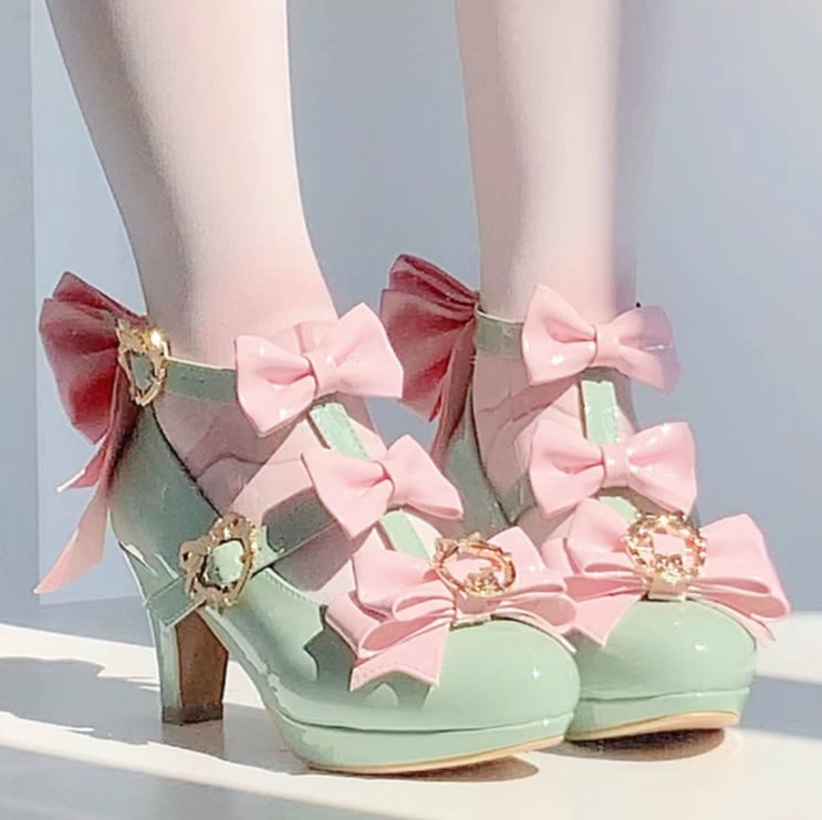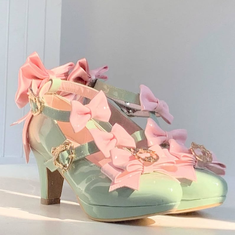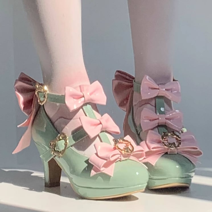 ゆめかわ♡全4カラー バックリボン&ゴールドチャーム付きパンプス kutu10
