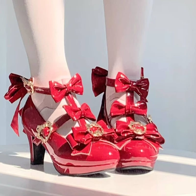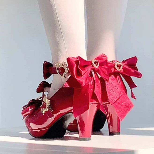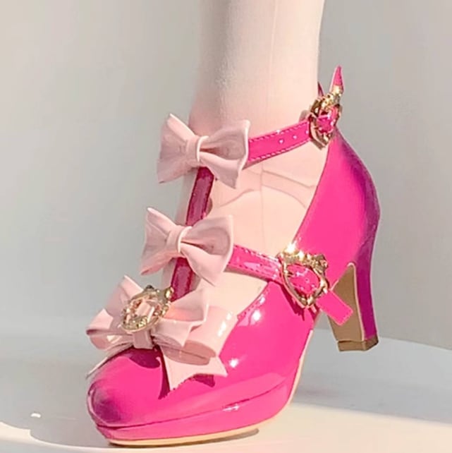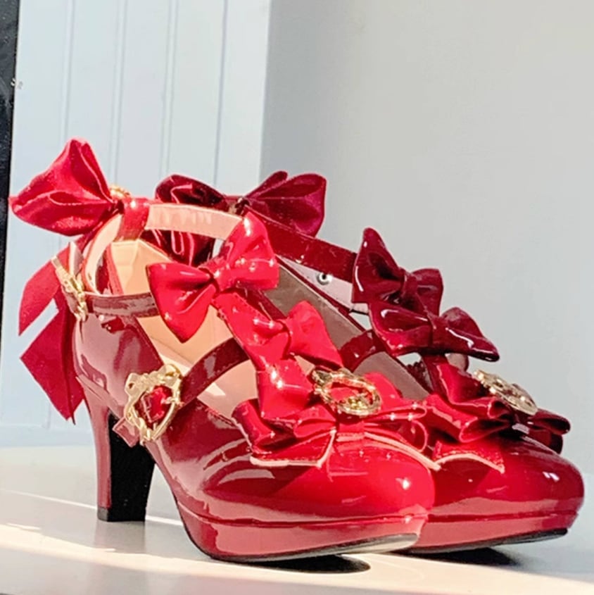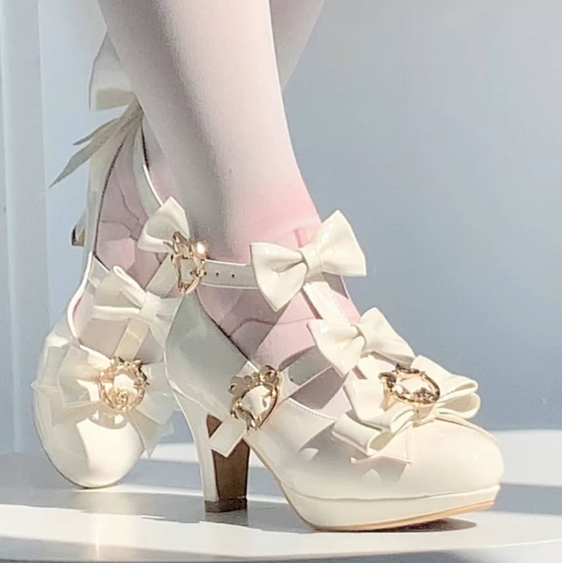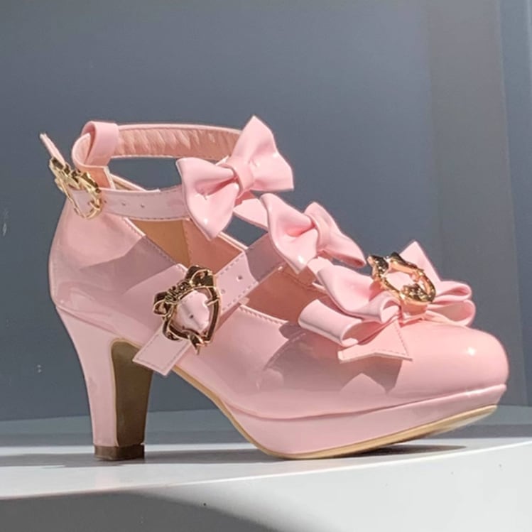 ゆめかわ♡全4カラー バックリボン&ゴールドチャーム付きパンプス kutu10