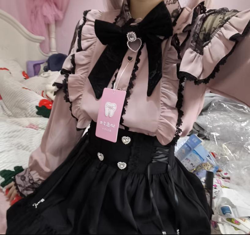 即納♡リボン付き♪ 量産型セットアップ ブルー長袖Lサイズ