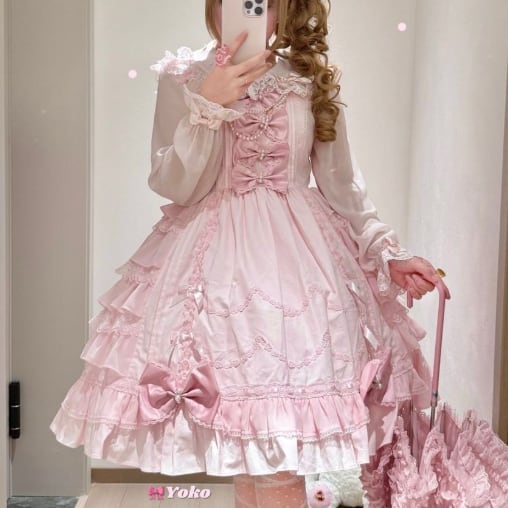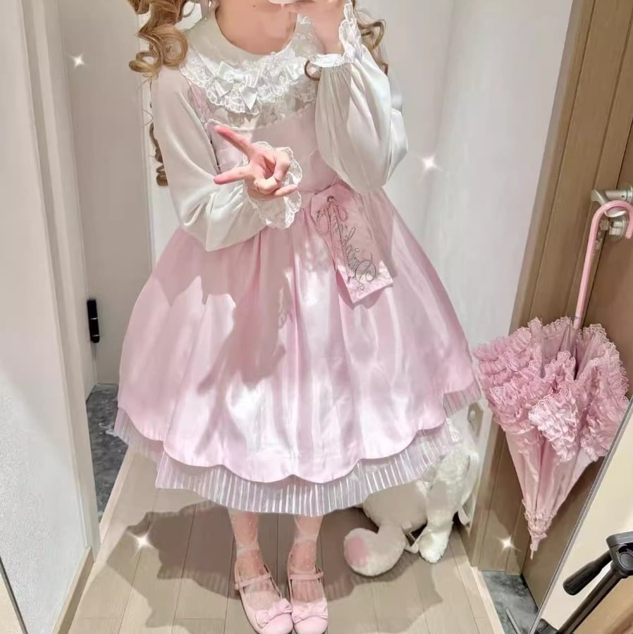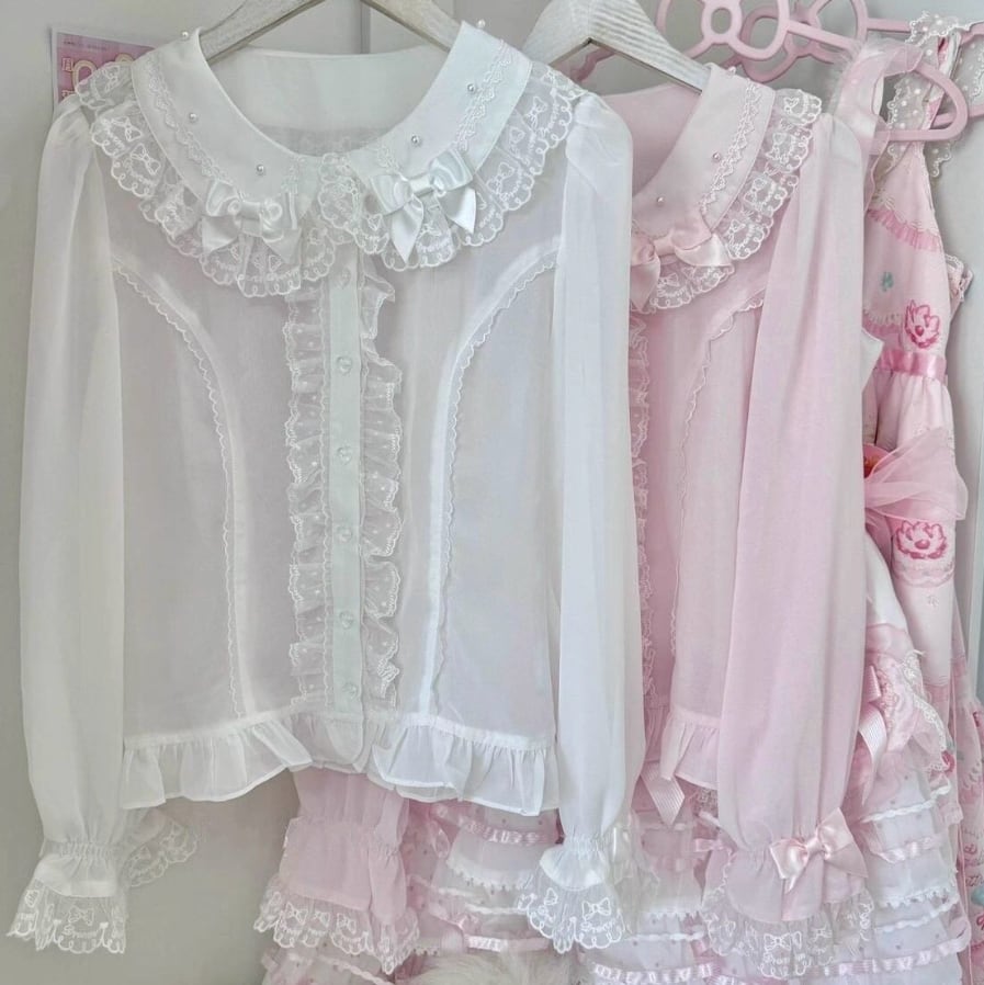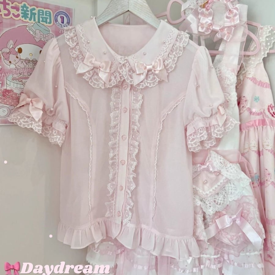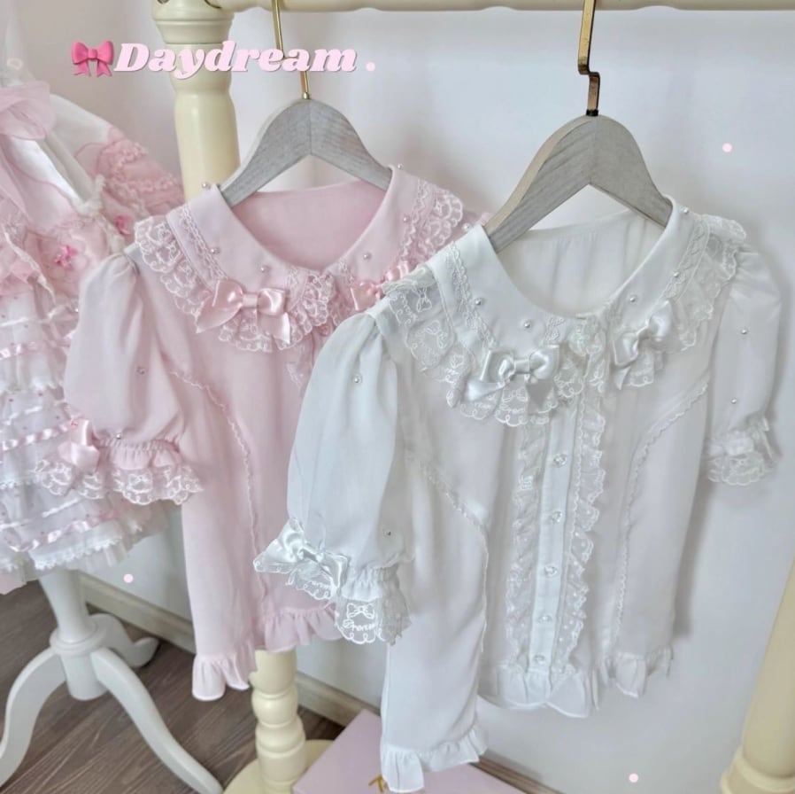 ゆめかわ♡全3カラー リボン&つけ袖付きフリルブラウス tops5★