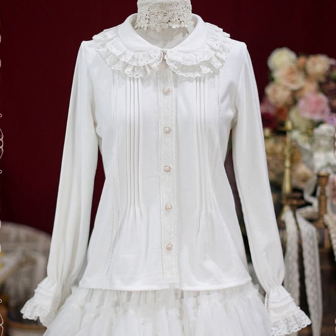 ゆめかわ♡全3カラー リボン&つけ袖付きフリルブラウス tops5★