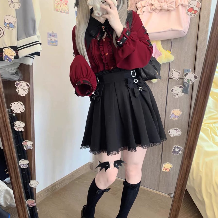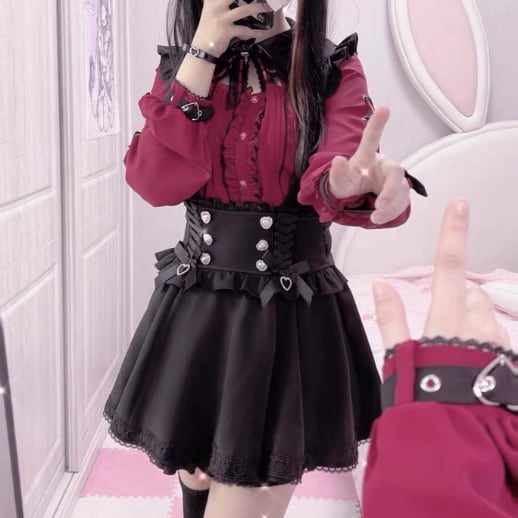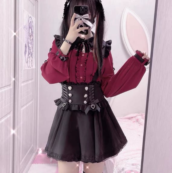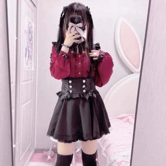 ♡サイズ・カラー交換は1度のみ無料で承ります(返送料はお客様元払いになります) ♡ご注文後のキャンセルはご遠慮下さい。 ♡ブラウスサイズ 【S】着丈約55cm バスト約86cm 肩幅約36cm 袖丈約57cm 【M】着丈約56cm バスト約91cm 肩幅約37cm 袖丈約58cm 【L】着丈約57cm バスト約96cm 肩幅約38cm 袖丈約59cm 【XL】着丈約58cm バスト約106cm 肩幅約39cm 袖丈約60cm ♡スカートサイズ 【S】着丈約45㎝ ウエスト約60-70㎝ 【M】着丈約45cm ウエスト約64-74㎝ 【L】着丈約45cm ウエスト約68-80㎝ 【XL】着丈約45㎝ ウエスト約72-84㎝ 【納期について】 ●約3~4週間。(20日前後で発送・5日~6日でお届けのイメージ) 当店では、ご注文後に海外より仕入れを開始するため、お届けまでにお時間を 頂いております。ご了承ください。 【商品・返品について】 ●イメージ違いなどの返品は受け付けておりません。 ●海外製品のため日本のものに比べて縫製が粗い場合がございます。 ●不良品などのご連絡は到着から3日以内にご連絡ください。期限を過ぎますと返品・交換の ご要望がお受けできません。 レディース ゆめかわいい 量産型 地雷系 ロリータ ロリィタ 可愛い かわいい