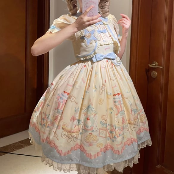 即納♡3段フリルロリィタJSK ブルーLサイズ