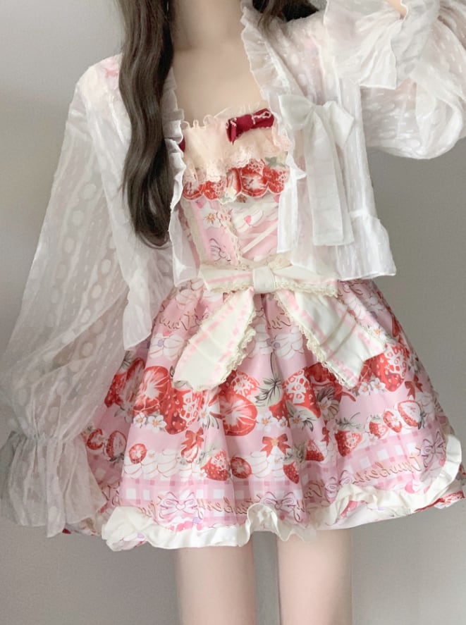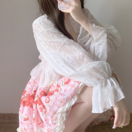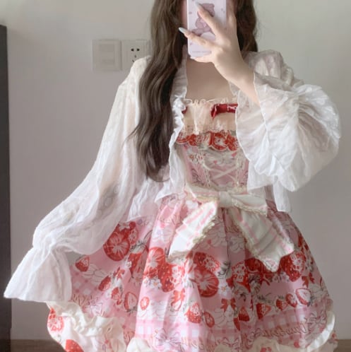 ゆめかわ♡ランタンスリーブリボン付きシフォンカーディガン jya12
