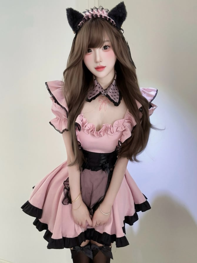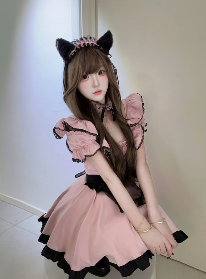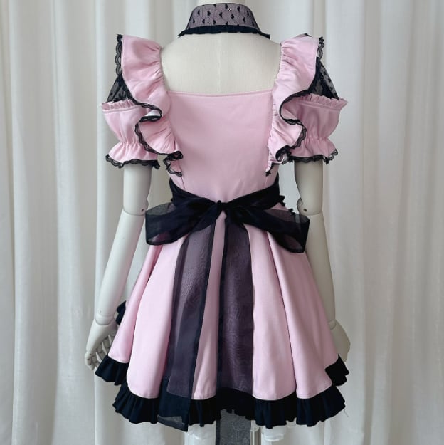 ゆめかわ♡全3カラー ネクタイ付きストライプメイド服 kos50★