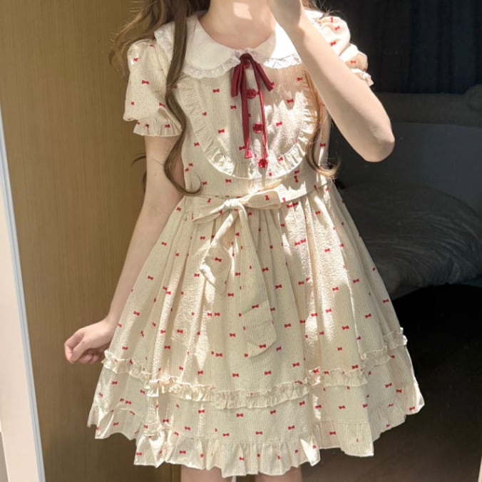 即納♡チョーカー&つけ袖付きピンクフリルドレス