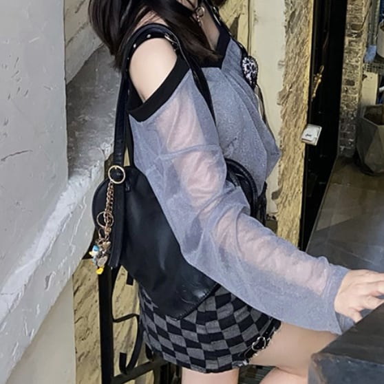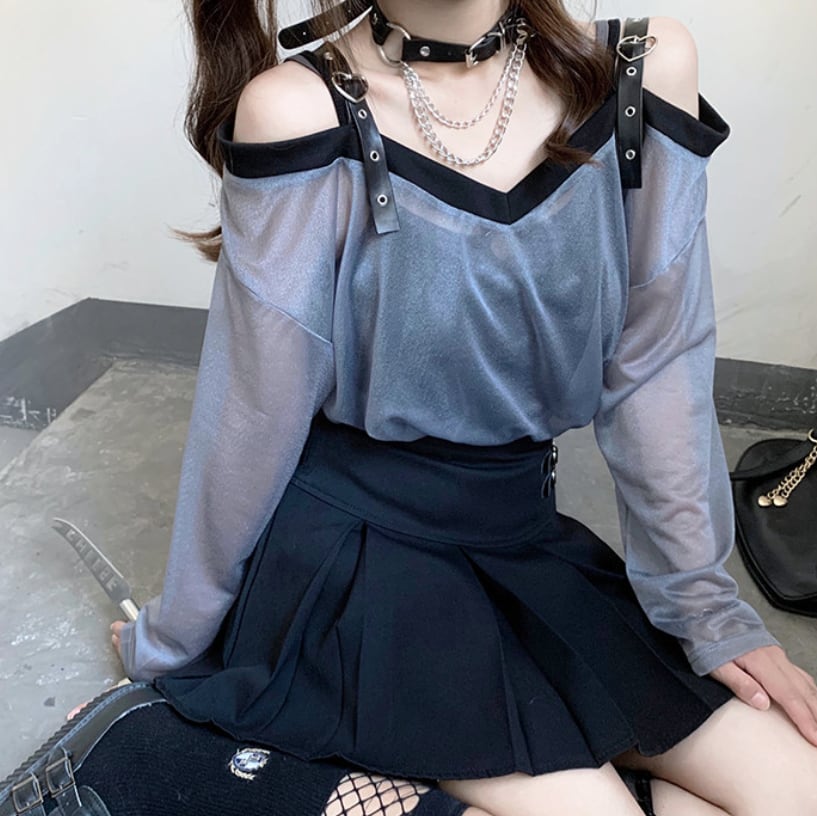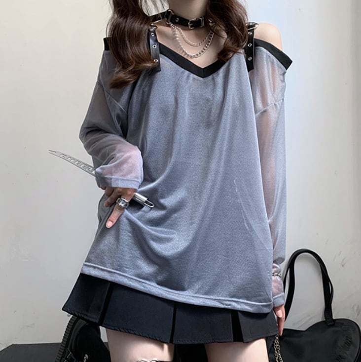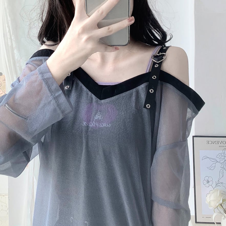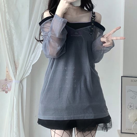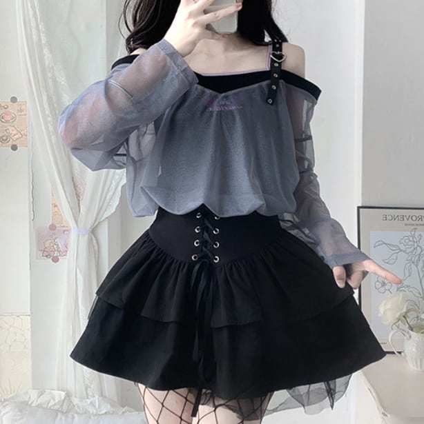 ゆめかわ♡全2カラー ダブルカラーシフォンブラウス tops34★