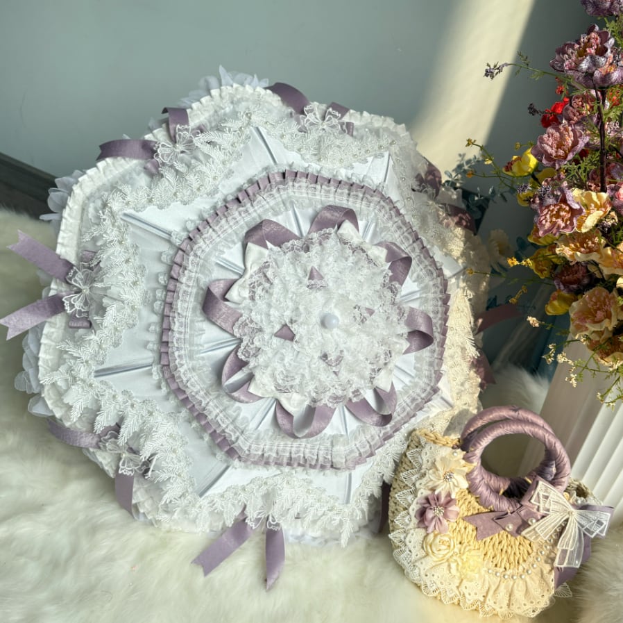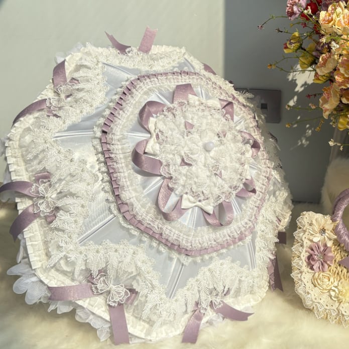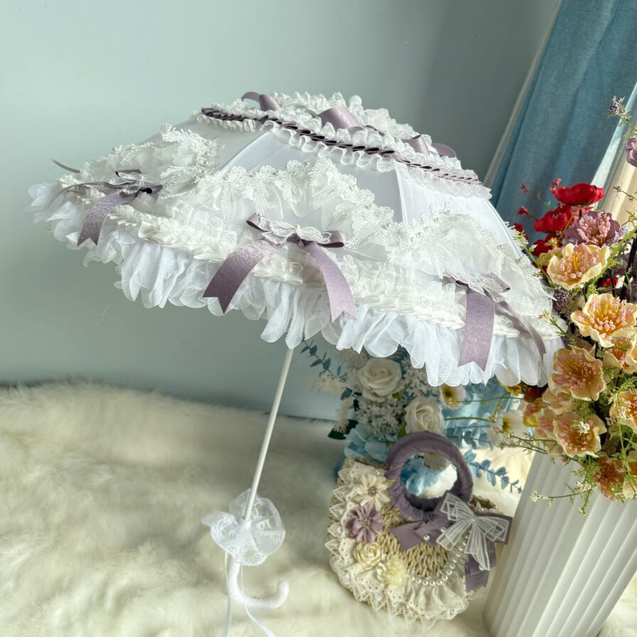 ゆめかわ♡全2カラー 晴れ雨兼用猫耳リボン付きロリータ傘 komono16