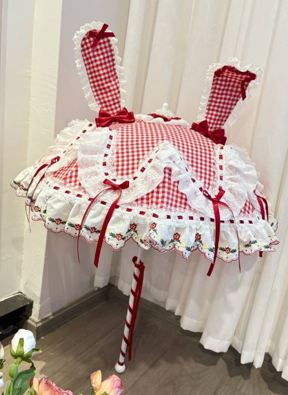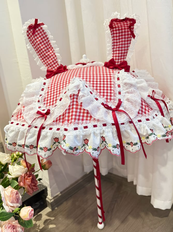 ゆめかわ♡全2カラー 晴れ雨兼用猫耳リボン付きロリータ傘 komono16