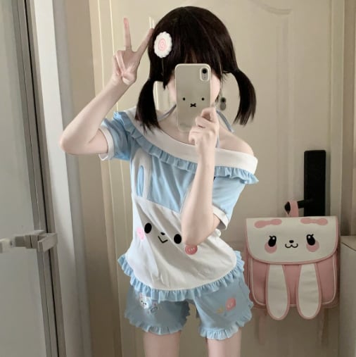 即納♡リボン付き♪ 量産型セットアップ ブルー長袖Lサイズ