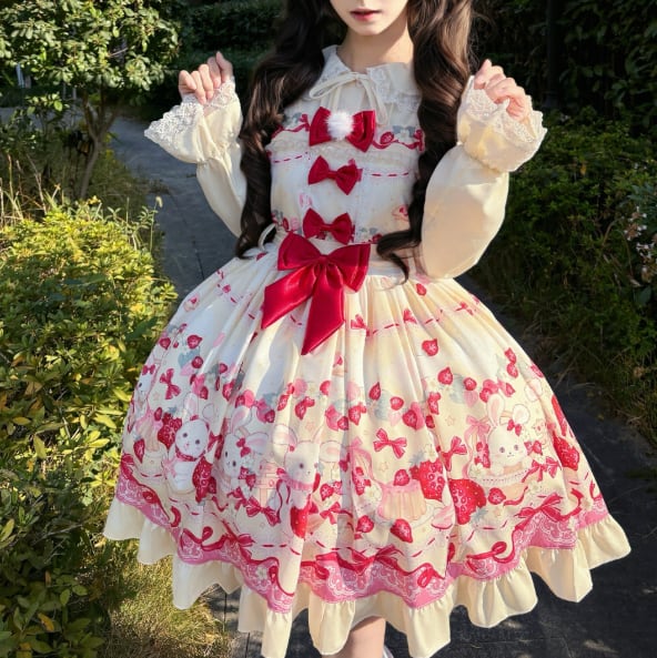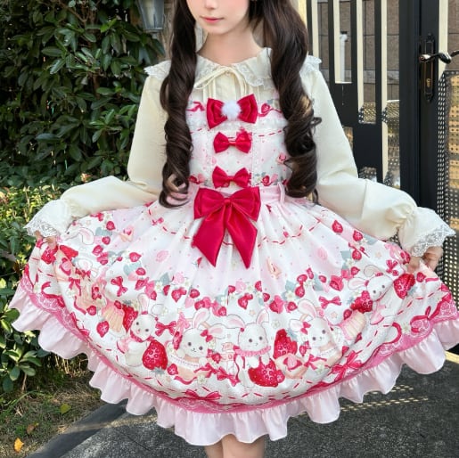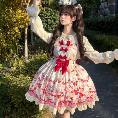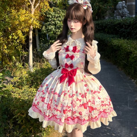 ゆめかわ♡全3カラー エプロン付きドット柄いちごJSK wanpi38