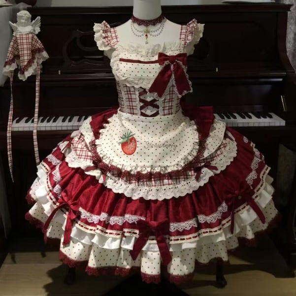 ゆめかわ♡全3カラー エプロン付きドット柄いちごJSK wanpi38