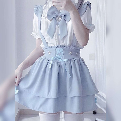 ※材料不足のためスカート下のプチリボンはつきません ♡サイズ・カラー交換は1度のみ無料で承ります(返送料はお客様元払いになります) ♡ご注文後のキャンセルはご遠慮下さい。 ブラウス S/M 着丈:59 バスト:90 肩幅:36 L 着丈:61 バスト:94 肩幅:37 ジャンスカ S/M スカート丈:42 ウエスト:64 L スカート丈:43 ウエスト:68 【納期について】 ●約3~4週間。(20日前後で発送・5日~6日でお届けのイメージ) 当店では、ご注文後に海外より仕入れを開始するため、お届けまでにお時間を 頂いております。ご了承ください。 【商品・返品について】 ●イメージ違いなどの返品は受け付けておりません。 ●海外製品のため日本のものに比べて縫製が粗い場合がございます。 ●不良品などのご連絡は到着から3日以内にご連絡ください。期限を過ぎますと返品・交換の ご要望がお受けできません。 レディース ゆめかわいい 量産型 地雷系 ロリータ ロリィタ 可愛い かわいい